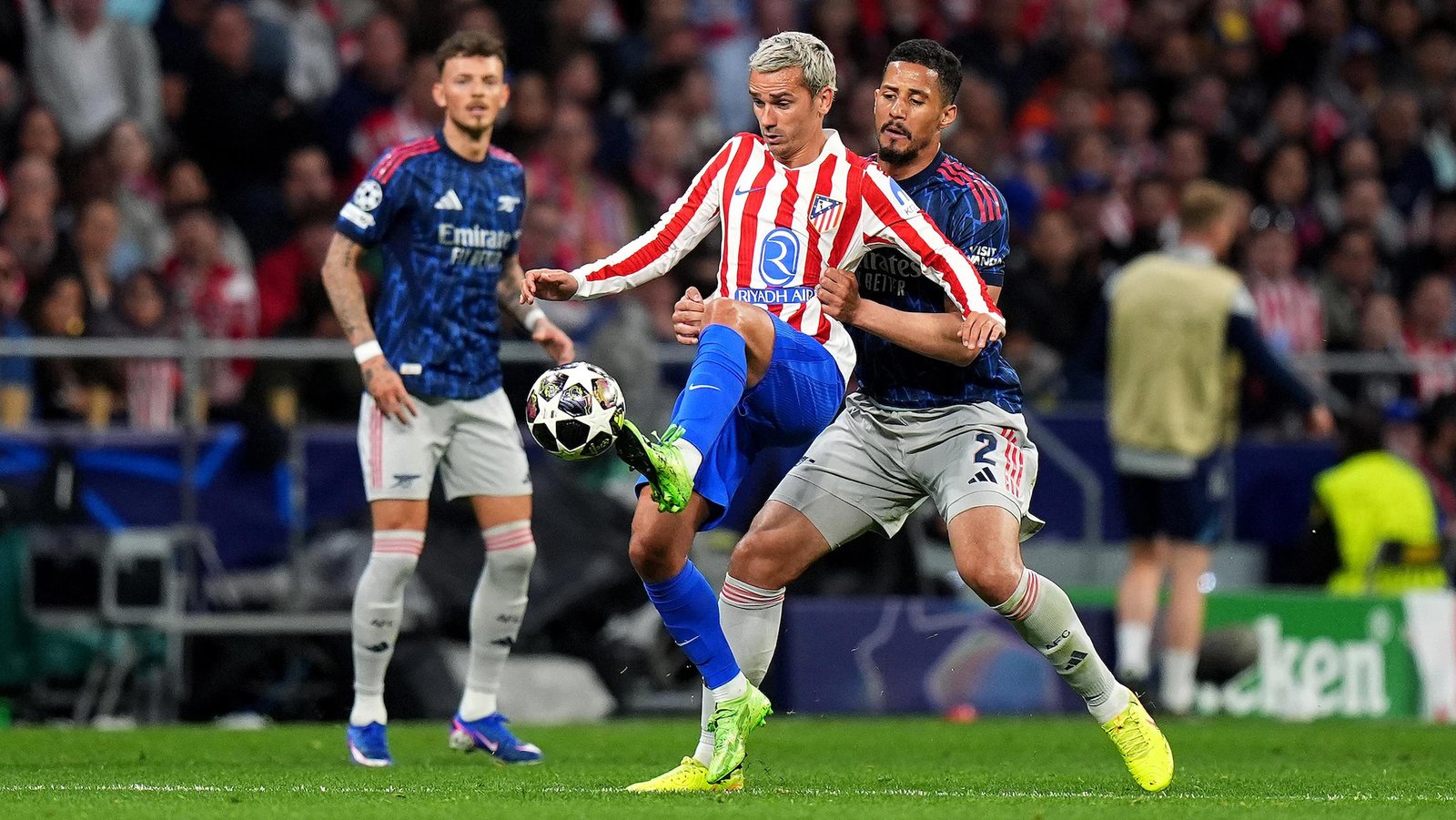 La entrada de Bukayo Saka en la segunda parte dio algo de oxígeno a los ingleses, obligando al Atlético a dar un paso atrás por precaución, aunque el control del ritmo siguió siendo mayoritariamente rojiblanco hasta el descuento.